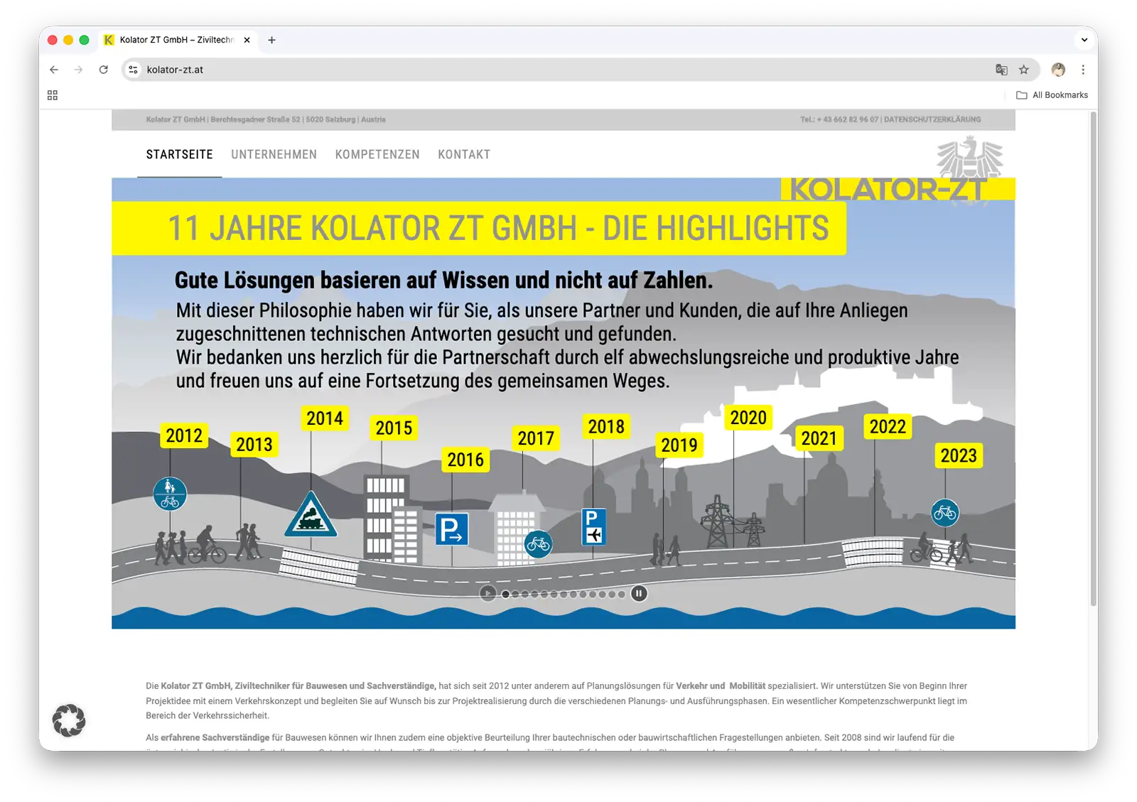 Screenshot der Kolator ZT GmbH Webseite mit dem Motiv des Specials 11 Jahre Kolator ZT GmbH